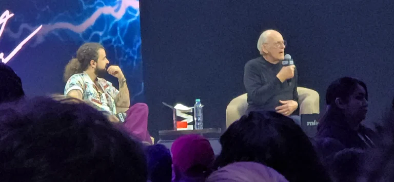Nuestro primer destino fue el Thunder Stage, donde el legendario Christopher Lloyd se robó el show. El público lo acompañó con la melodía de Los Locos Addams, chasqueando los dedos mientras las luces bailaban. Lloyd, sorprendido y feliz, confesó que su personaje favorito es el Tío Lucas, al que admiraba desde niño en las tiras cómicas de los 40. Contó cómo la llamada para interpretarlo en Los Ángeles fue un sueño hecho realidad. También habló de cómo veía la actuación como un simple trabajo, sin imaginar que terminaría siendo tan querido. Cuando tocó el tema de Volver al Futuro, reveló que se inspiró en el músico Leopold Stokowski y en Einstein para dar vida al excéntrico Doc Brown. Y como buen invitado, cerró con un mensaje motivador y hasta nos dio su bendición: “México va a ganar la copa mundial”.