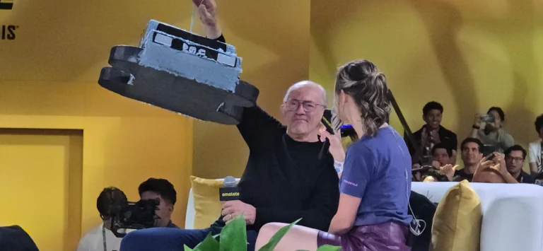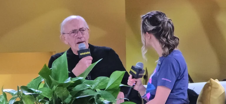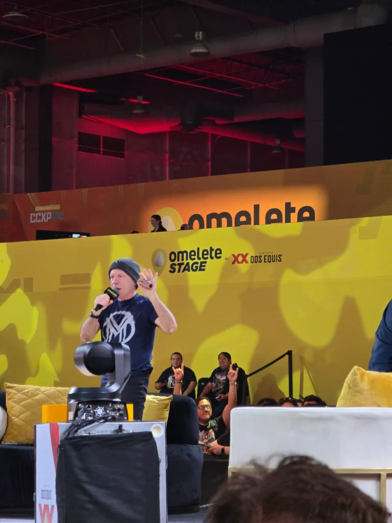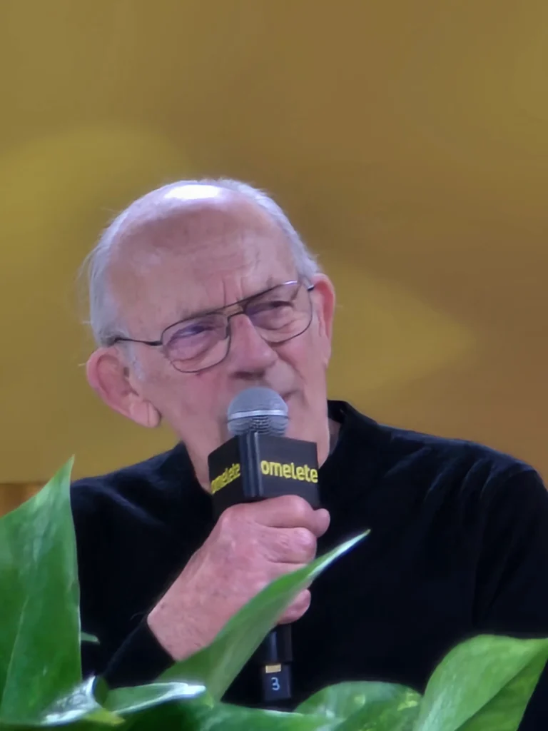 Después, en el Omelete Stage by Dos Equis, la charla fue más informal, aunque se perdió tiempo por la falta de inglés fluido de los entrevistadores. Aun así, hubo un momento especial: regalarle a Lloyd una piñata con forma de DeLorean, detalle que arrancó sonrisas.
