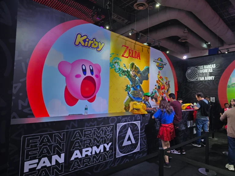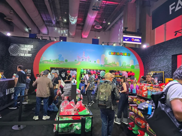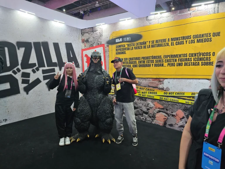 La tienda oficial de Fan Army con mercancía oficial de Nintendo fue otro punto obligado, con artículos de Mario y Zelda que iban desde playeras y gorras hasta peluches y mochilas. Y hablando de íconos, la botarga original de Godzilla estuvo presente: podías pedirle la pose que quisieras. Nosotros, claro, le pedimos un corazón con sus manitas.