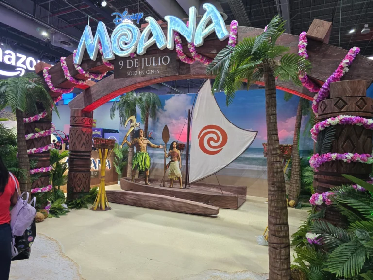 Disney trajo la playa a la convención con los protagonistas de Moana, que se estrena el 9 de julio. También apareció la vaquerita Jesse y nos regalaron un pin exclusivo de Toy Story 5. Para aguantar la caminata, ofrecieron café y capuchinos gratis. ¡Gracias, Disney!