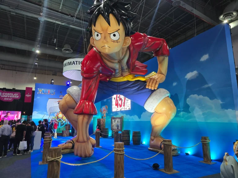 Toei Animation regaló artículos de One Piece y ofreció fotos con un Luffy gigante que se robó el corazón de todos. En el stand de Canon, mediante una mecánica de moneditas, nos llevamos un pin y un botón con nuestra propia imagen.