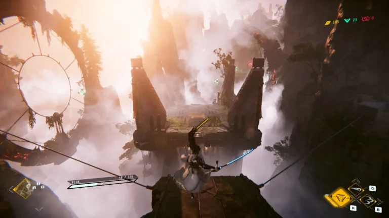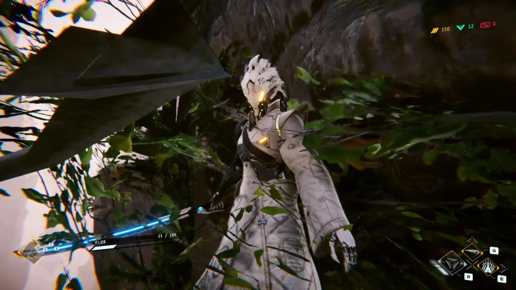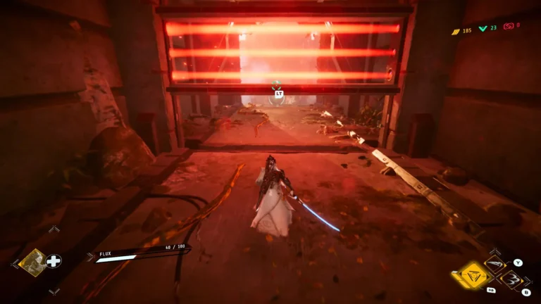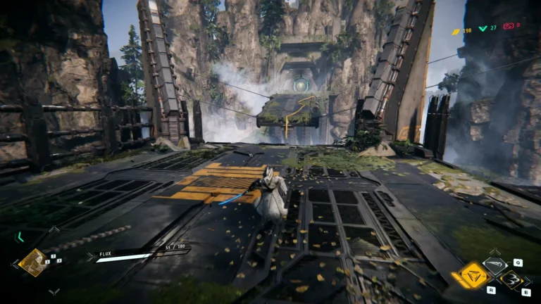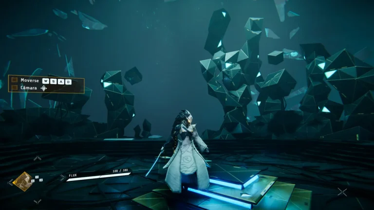 Aun así, el juego sí plantea un contexto interesante desde el inicio. Tomamos el control de Flux, una máquina humanoide diseñada para el combate, equipada con habilidades que la convierten en un arma viviente, casi como un cyber ninja. El escenario inicial es un espacio extraño, un limbo entre lo tecnológico y lo orgánico, donde aparece Eden, una entidad consciente que funge como guía en los primeros pasos.